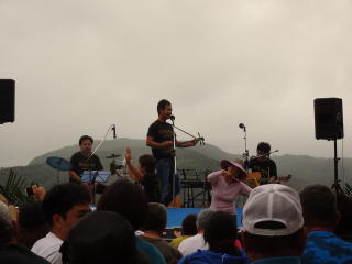 船浮音祭りは池田さんの他、沖縄県内外で活躍する民謡唄者の上間綾乃さんがゲストで参加され、司会は津波信一さんが対応されました。音祭りはまず池田さんのステージで始まり、「かたみ節」などの民謡のほか、「島の人よ」や「ウートートー」などのオリジナル曲などが披露され、ゲストの上間さんは代表曲の「命結ーぬちゆい」や「悲しくてやりきれない」のカバー曲を沖縄方言などで歌われ、最後は「ヒヤミカチ節」で閉められました。