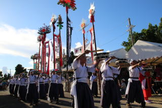 | 各団体の奉納終了後、旗頭の奉納やガーリーがあります。 |