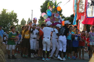 | 子供たちも小さな頃から旗頭奉納を行います。 |