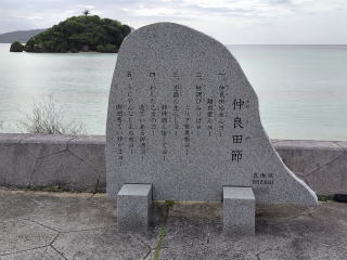 「殿様節之歌碑」の下段(基礎部)には、船浮村の絶世の美女カマドマと、祖納から通う殿様の恋愛模様が記されています。