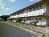 (写真の奥が白浜小中学校で、ここで島の道路は行き止まりとなります。) |