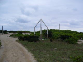 レストハウスから少し南西側の海岸側(桟橋近く)にある結婚式場です。結婚式当日にはこのモニュメントにウェディングベルが取付けられ、地面には赤絨毯が敷かれます。 |