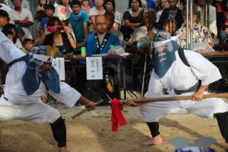 このあとツナヌミン(牛若丸と弁慶)と綱引きが行なわれましたが、都合により会場を引き上げたため写真はありません。 |