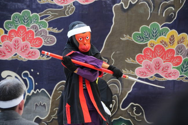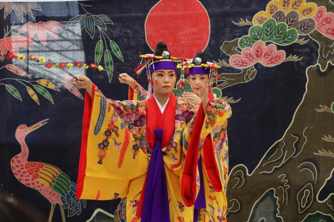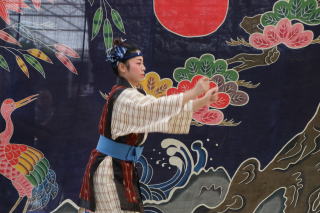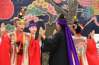 | 束辺名の按司は切られてもなかなか死なず、何度も立ち上がっては切られ観客を笑わせます。 |