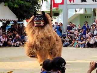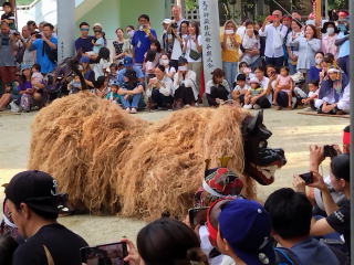 | 登野城のオンプールの最後は獅子保存会による獅子舞奉納です。 |