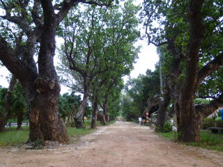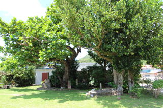 カマドマは、このクバデサ(モモタマナ)の木陰で、膝の痛むまでこの役人(殿様)を待っていたそうです。 |