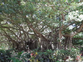 千手ガジュマルの向かい側にあるガジュマルです。5本の木が寄り添っているように見えるところからこのように名付けられたものと思われます。 |